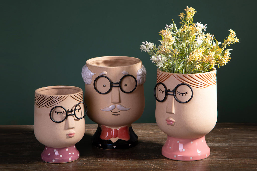 Set 2 Vasi Testa Donna con Occhiali Ø 12,5 H 16
