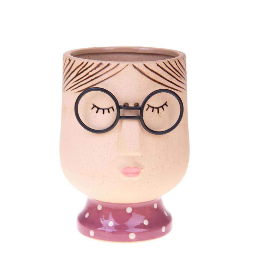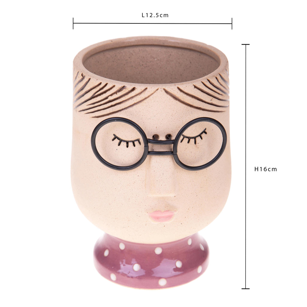 Vaso Testa Donna con Occhiali diametro 12,5 altezza 16