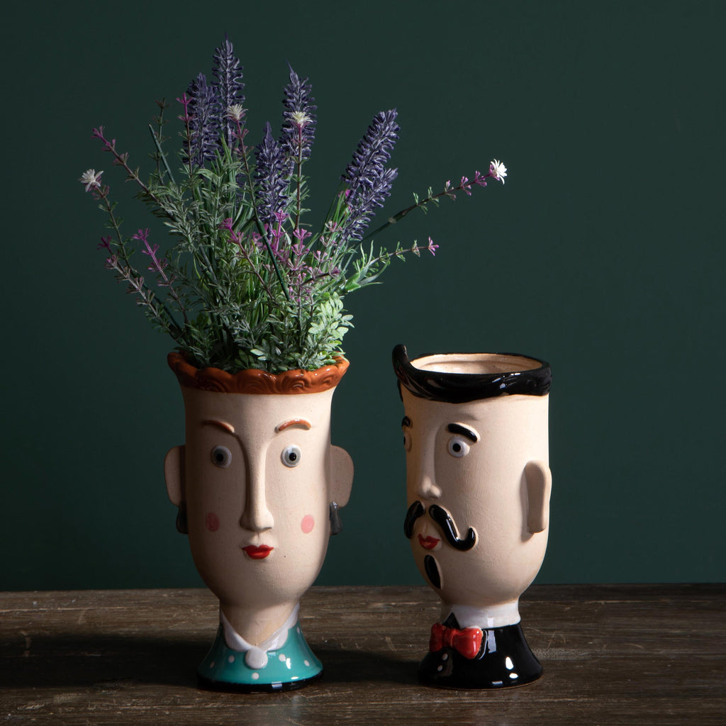 Set 2 Vasi Testa Uomo Ø 12x H 22 cm