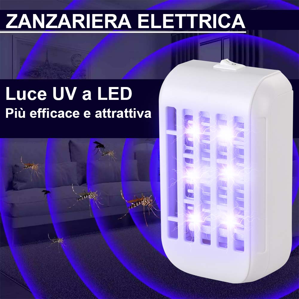 1 x Set 2 Zanzariera Elettrica Anti Zanzare Mosche Luce 4 LED UV Elettroinsetticida