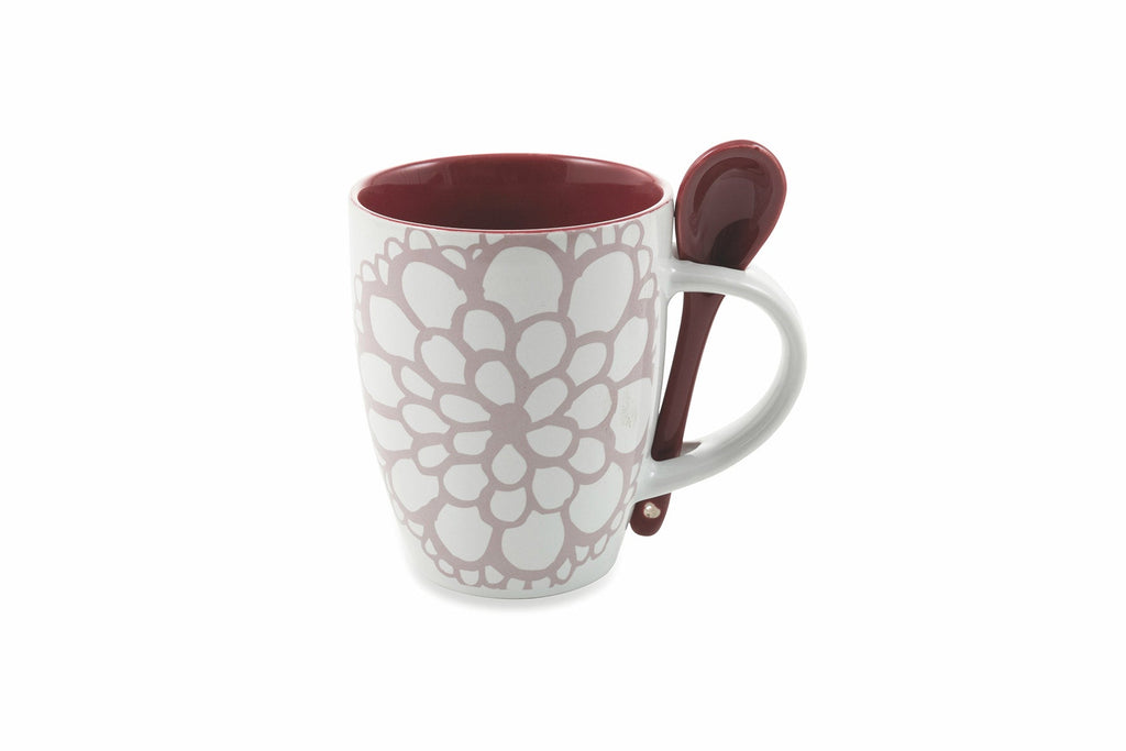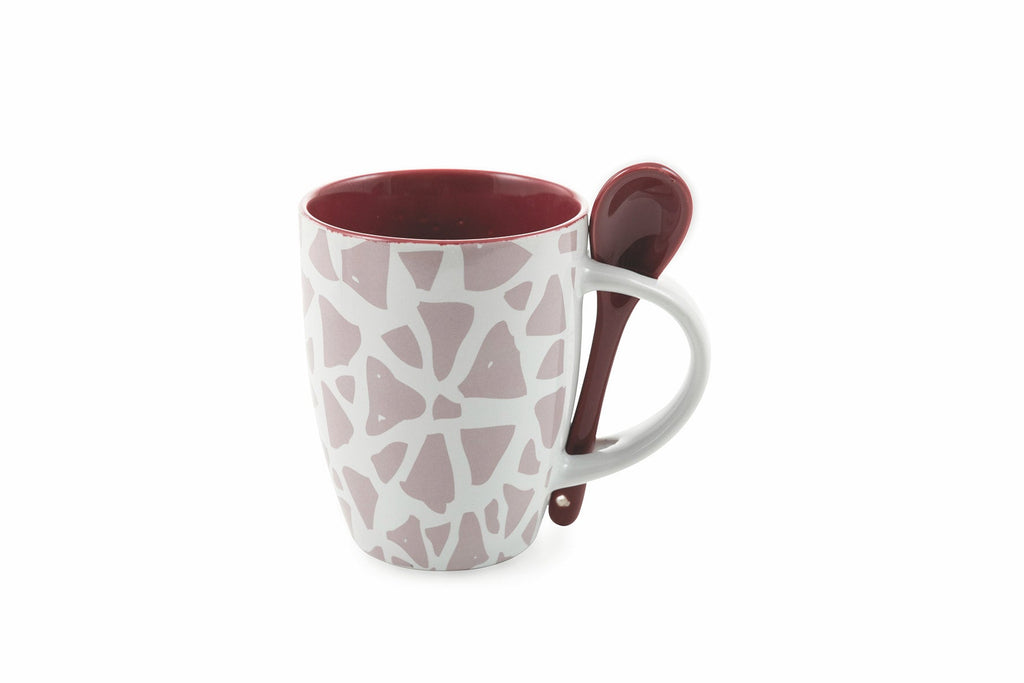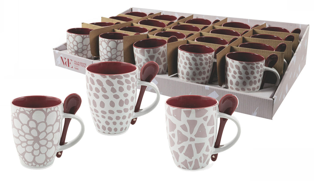 Set 20 Tazze con Cucchiaino Ø8x10 cm in Ceramica Villa d'Este Home Tivoli Aurora Bianco e Viola