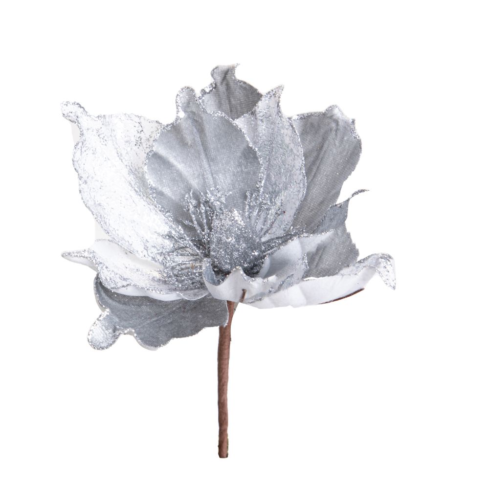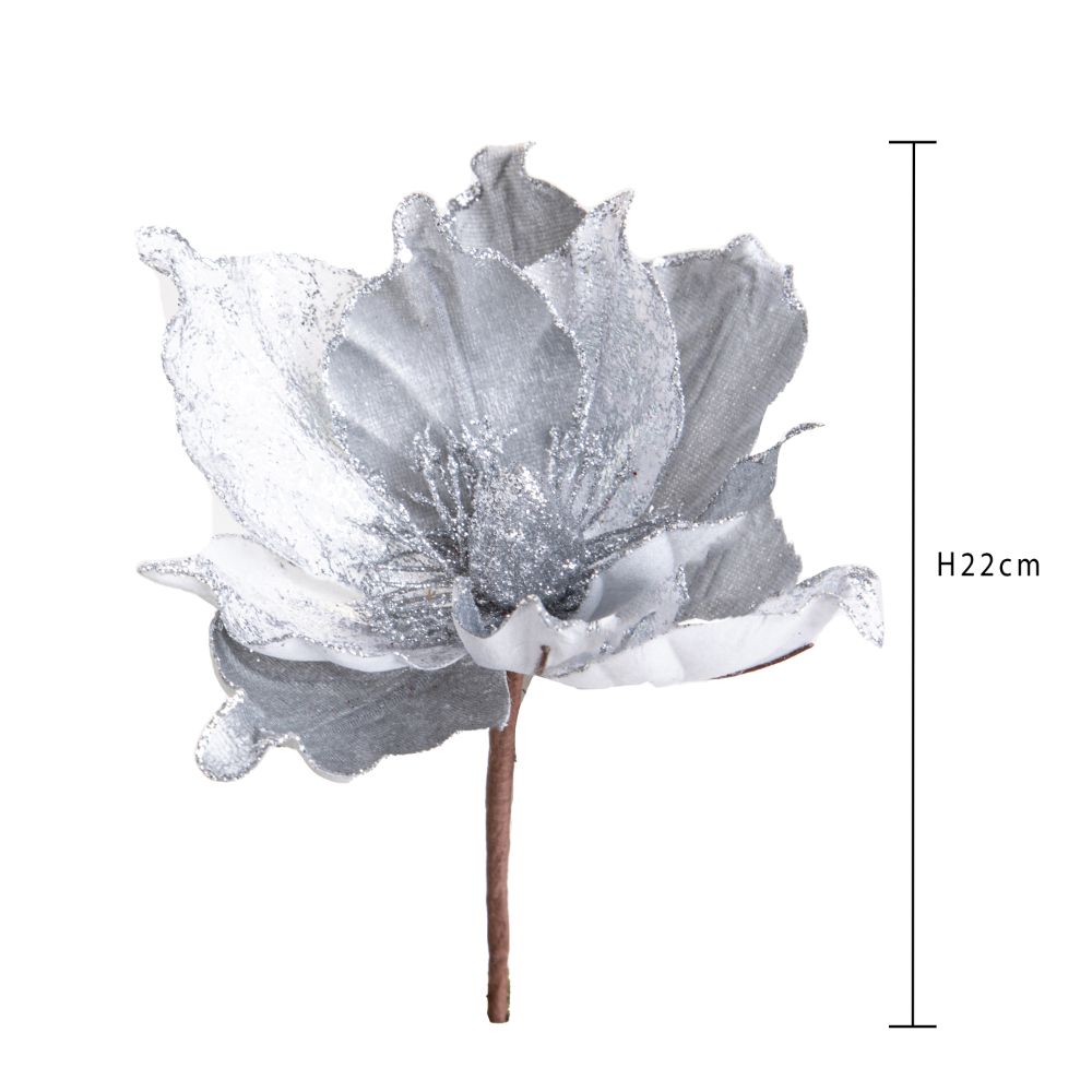 Set 24 Rami Artificiali Magnolia 22 cm in Sintetico Argento