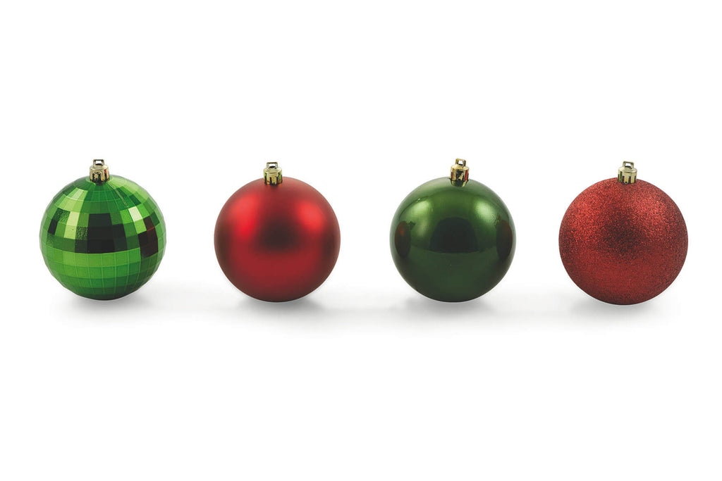 - Confezione assortita con palle verdi e rosse lucide, satinate, glitterate