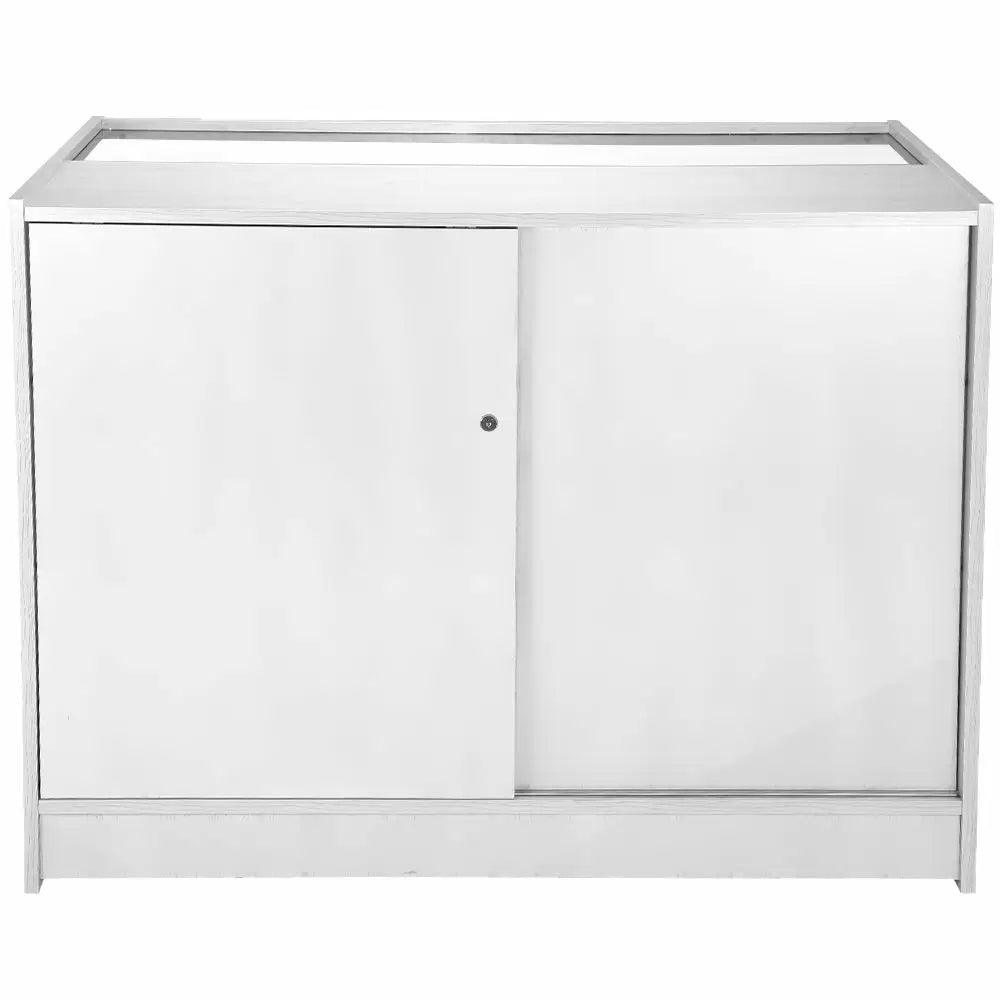 Il bancone K1200 è un’unità richiudibile che mette in mostra i tuoi prodotti e al tempo stesso li protegge. Ha un pannello in vetro nella parte frontale più un altro sulla superficie superiore, il che vuol dire che i tuoi clienti possono vedere i tuoi articoli ma non possono toccarli. Le porte scorrevoli richiudibili nella parte posteriore danno a te e solo a te la possibilità di accedere ai prodotti. Dimensioni: 90cm (altezza) x 120cm (larghezza) x 60cm (profondità).