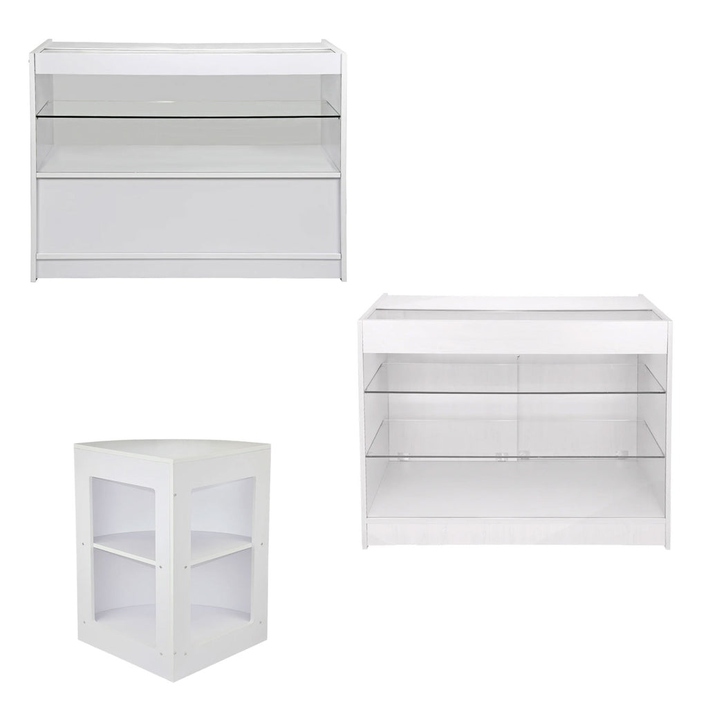 Set 3 Banconi Negozio Modulari Ripiani in Vetro in Laminato Bianco Brillante