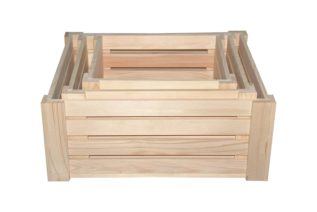 Set 3 Casse Multiuso in Legno di Abete Orion Grezzo
