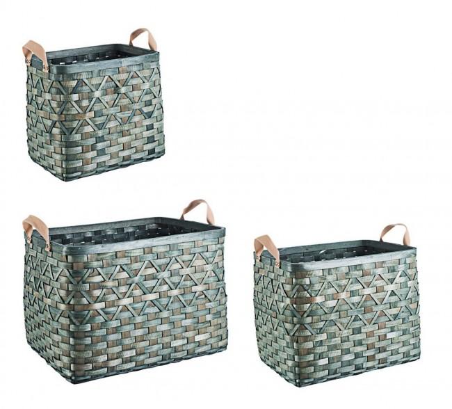 Set 3 Ceste 2 Maniglie Lisette Rettangolari Verde in Legno