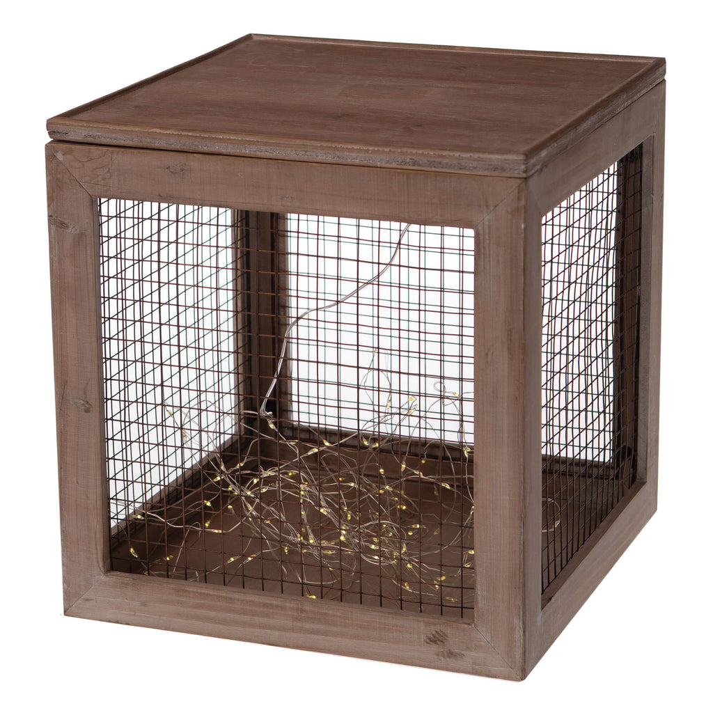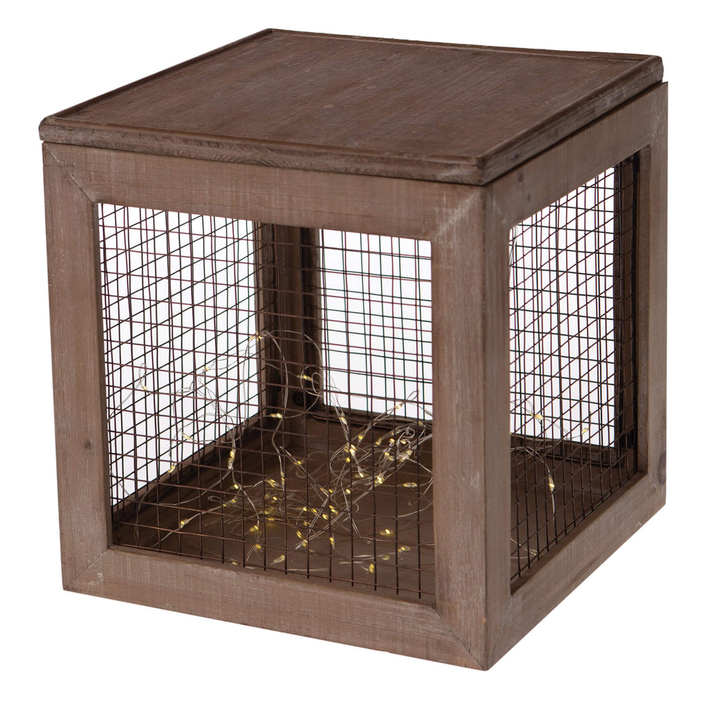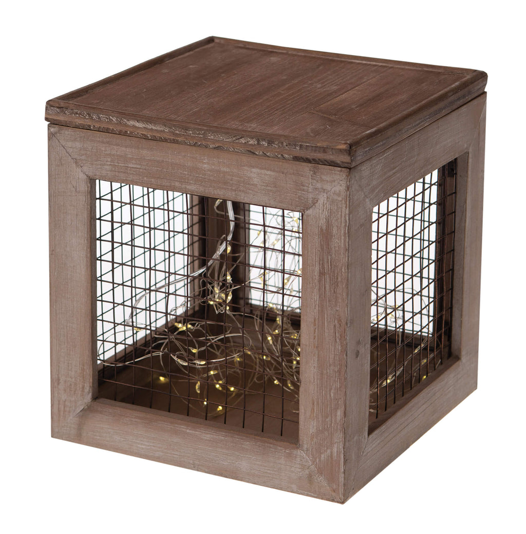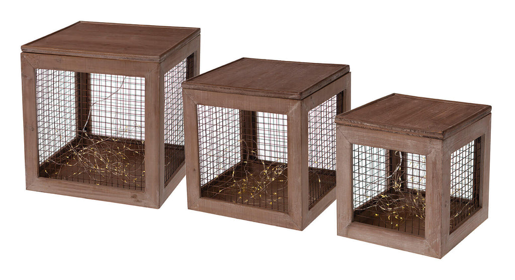 Set 3 Cubi Natalizi Decorativi con LED in Legno Marroni