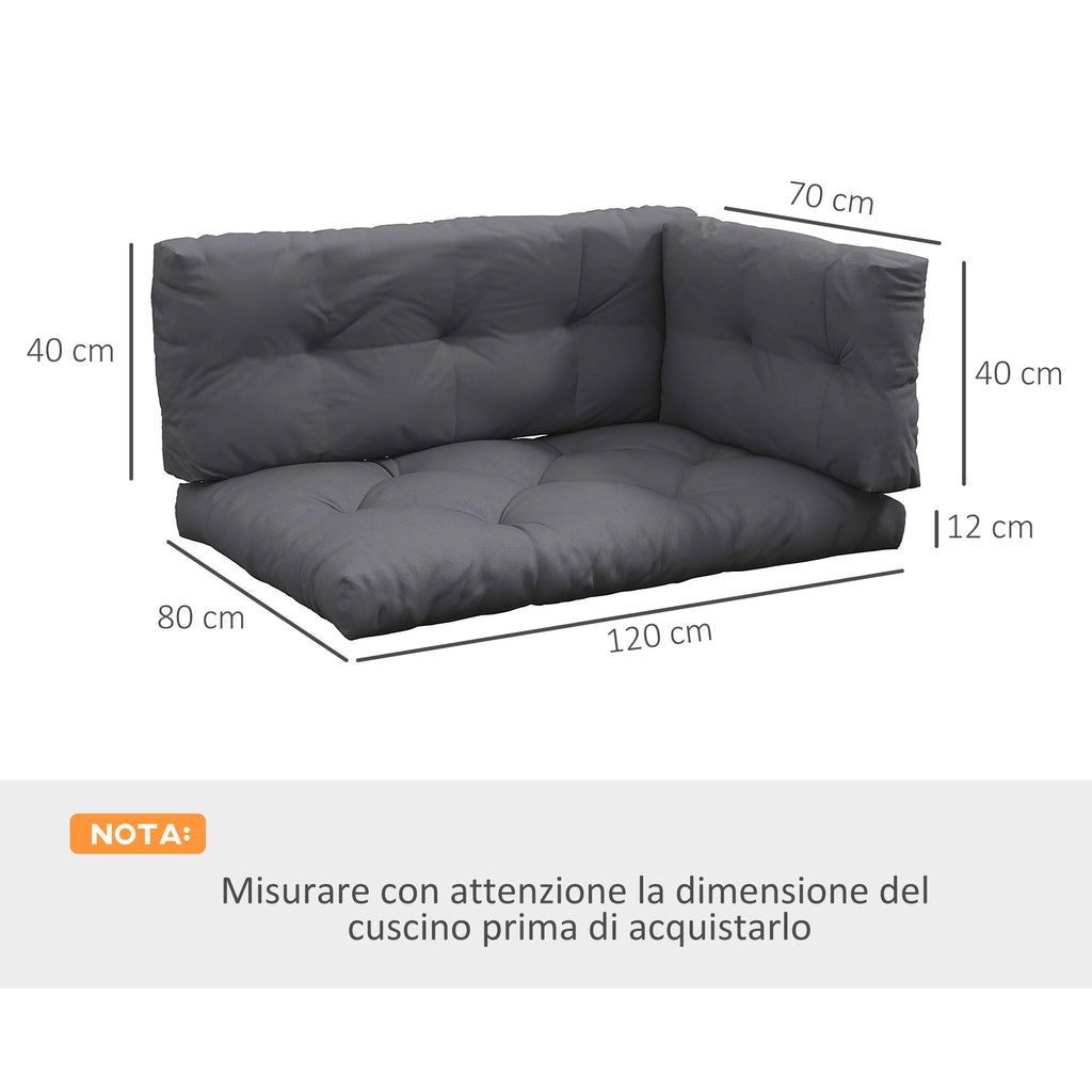 Set 3 Cuscini da Giardino per Divani e Pallet in Poliestere con Imbottitura Spessa Grigio Carbone
