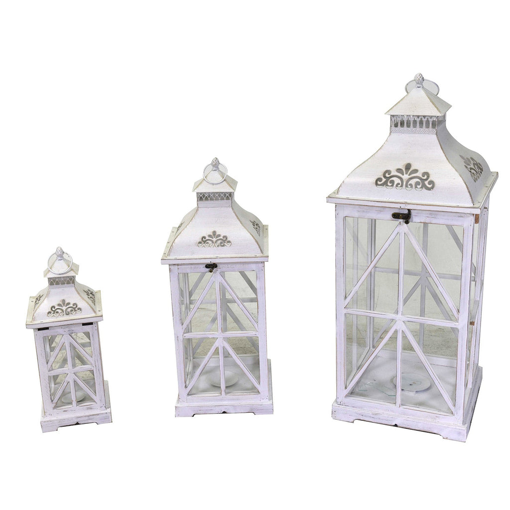 Set 3 Lanterne in Legno in Metallo sbiancato quadro
