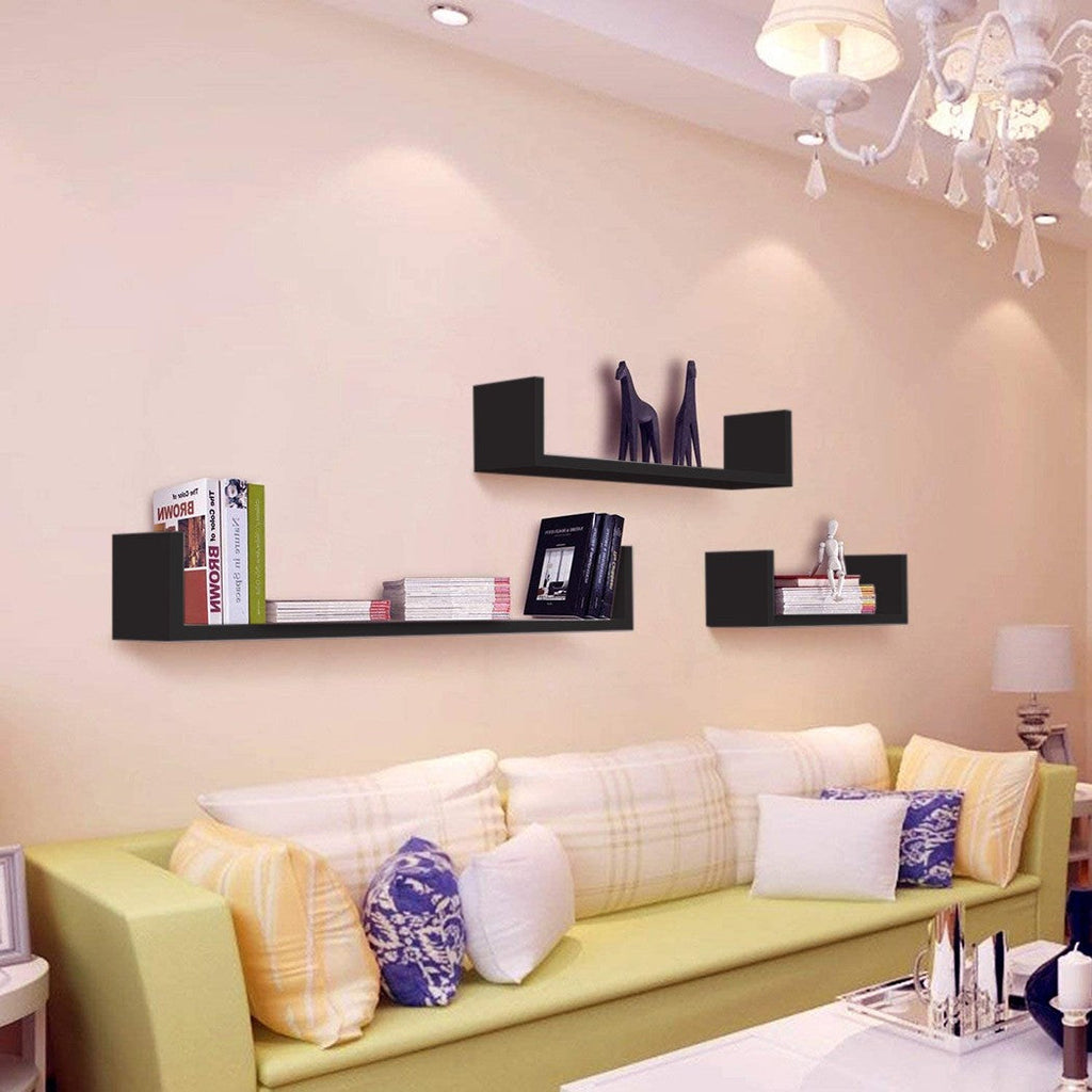 Set 3 mensole a forma di u 30-40-50 cm Portaoggetti da parete Neri