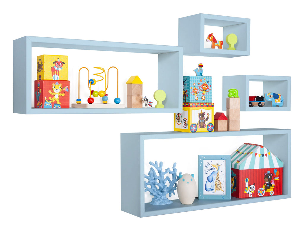 Set 3 Mensole Cubo da Parete Quadrato e Rettangolare in Fibra di Legno Merlino Blu Baltico