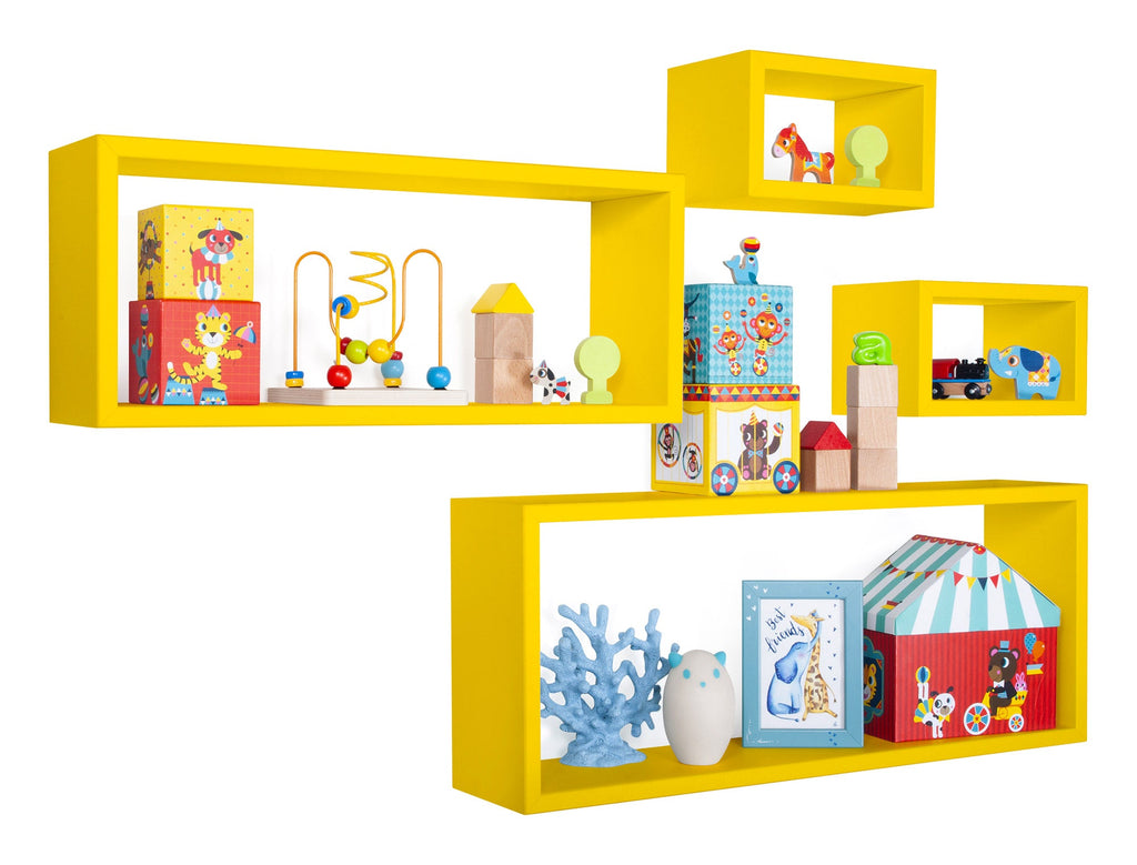 Set 3 Mensole Cubo da Parete Quadrato e Rettangolare in Fibra di Legno Merlino Giallo Canarino