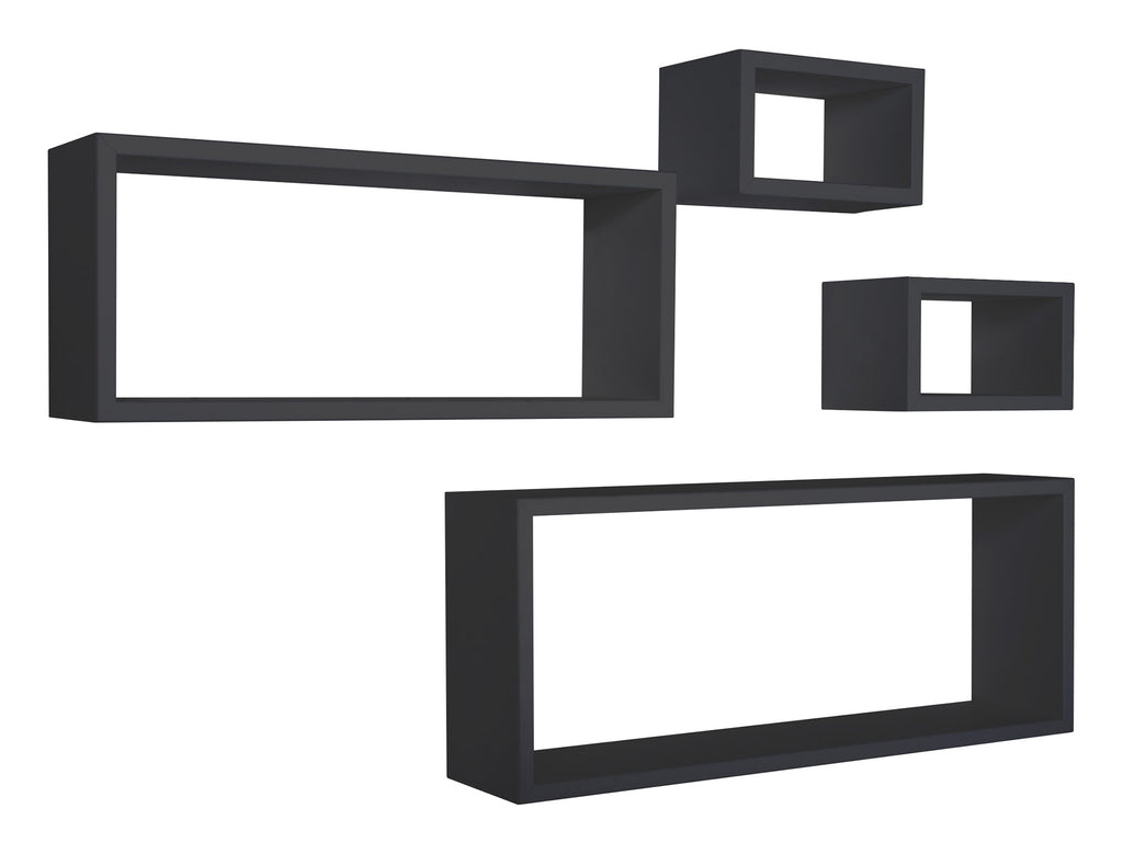 Set 3 Mensole Cubo da Parete Quadrato e Rettangolare in Fibra di Legno Merlino Nero