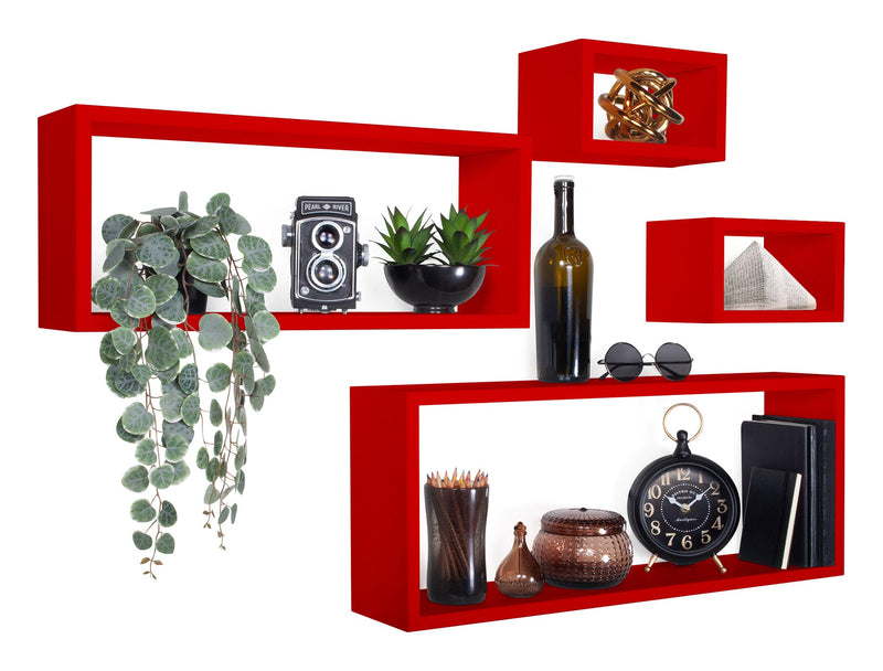 Set 3 Mensole Cubo da Parete Quadrato e Rettangolare in Fibra di Legno Merlino Rosso