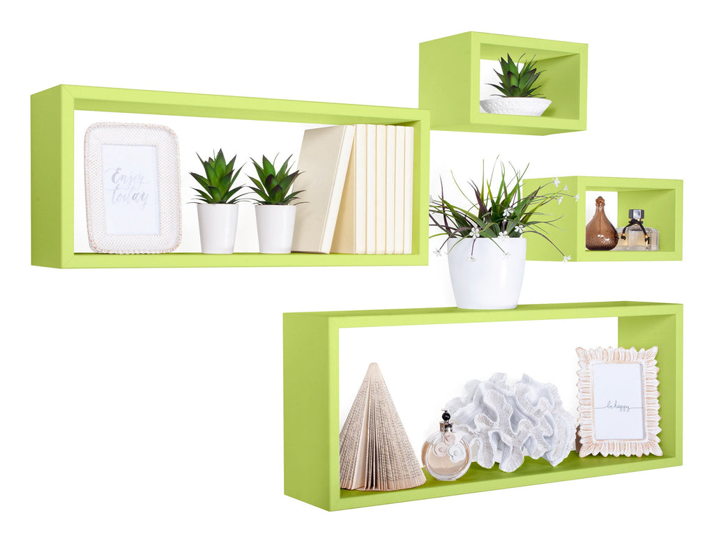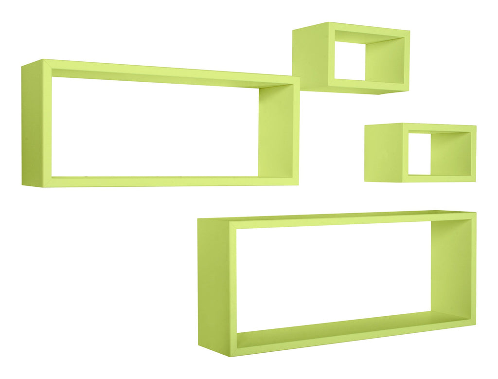 Set 3 Mensole Cubo da Parete Quadrato e Rettangolare in Fibra di Legno Merlino Verde