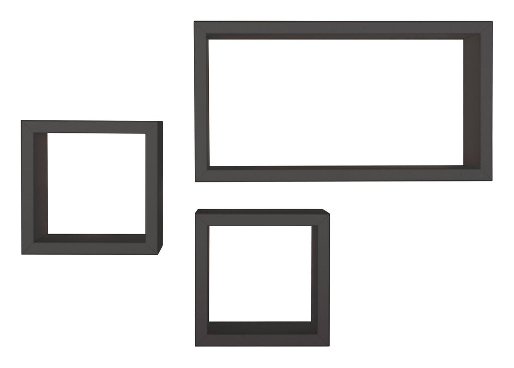 Set 3 Mensole Cubo da Parete Quadrato e Rettangolare in Fibra di Legno Tribù Nero