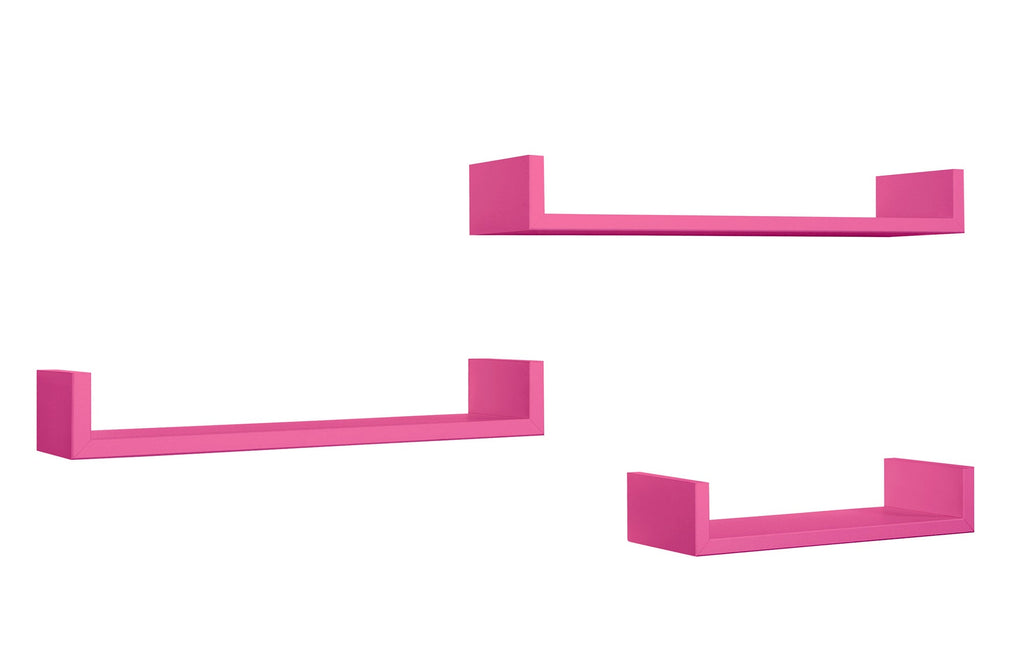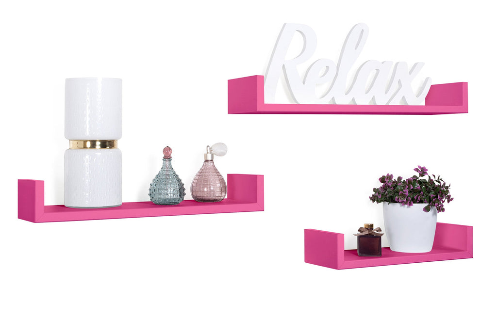 Set 3 Mensole da Parete 60-50-40x15,5x8 cm in Fibra di Legno Calamita Fuxia