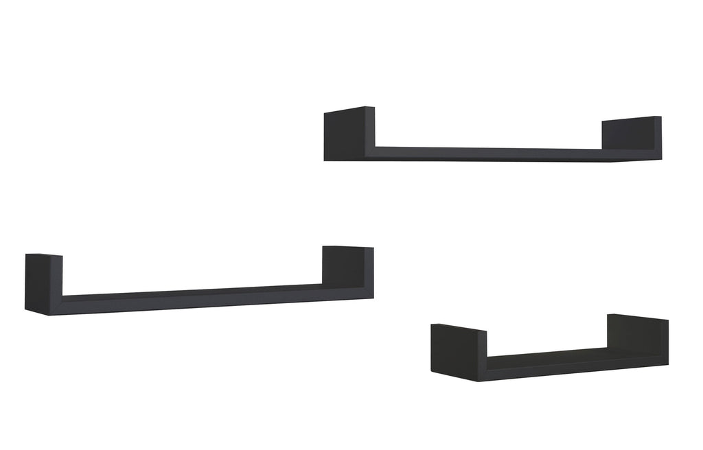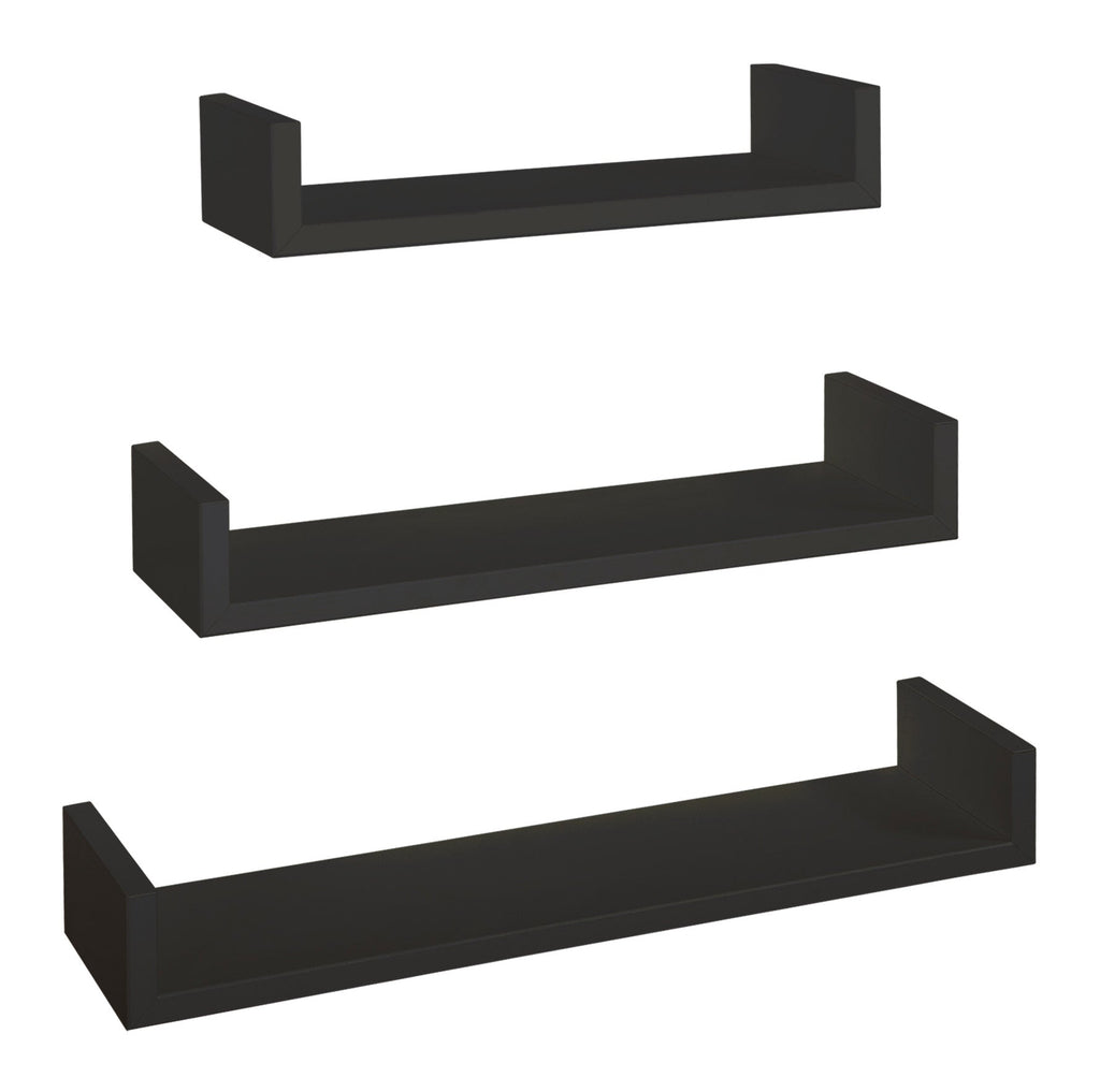Set 3 Mensole da Parete 60-50-40x15,5x8 cm in Fibra di Legno Calamita Nero