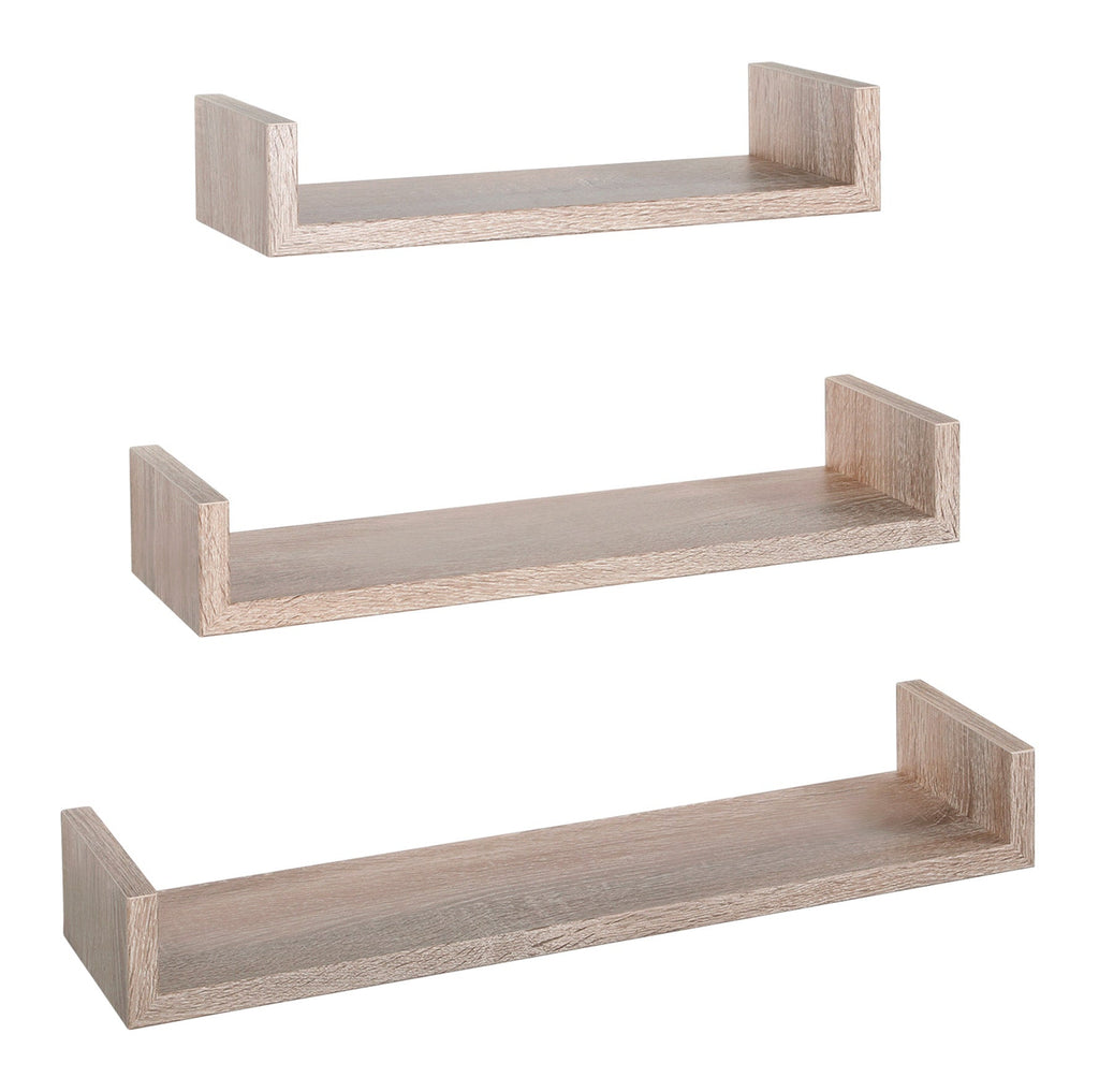 Set 3 Mensole da Parete 60-50-40x15,5x8 cm in Fibra di Legno Calamita Rovere Sagerau