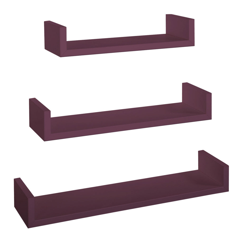 Set 3 Mensole da Parete 60-50-40x15,5x8 cm in Fibra di Legno Calamita Viola Melanzana