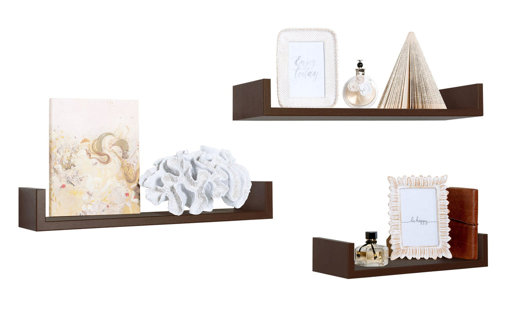 Set 3 Mensole da Parete 60-50-40x15,5x8 cm in Fibra di Legno Calamita Wengè