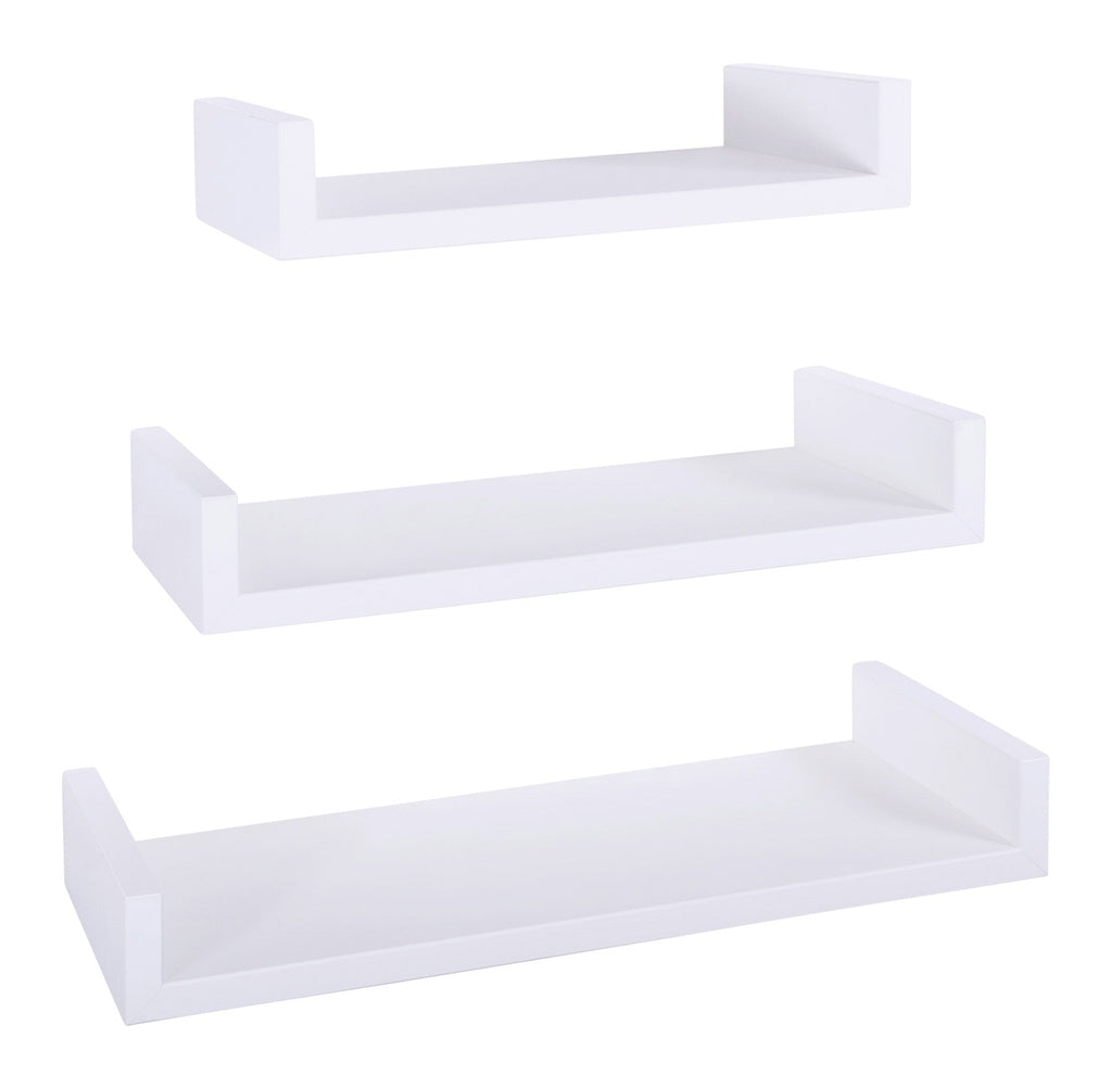 Set 3 Mensole da Parete 60-50-40x23,7x8 cm in Fibra di Legno Calamita Maxi Bianco
