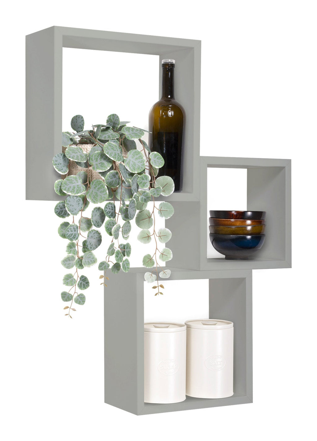 Set 3 Mensole da Parete Cubo in Fibra di Legno Incubo Grigio Sasso
