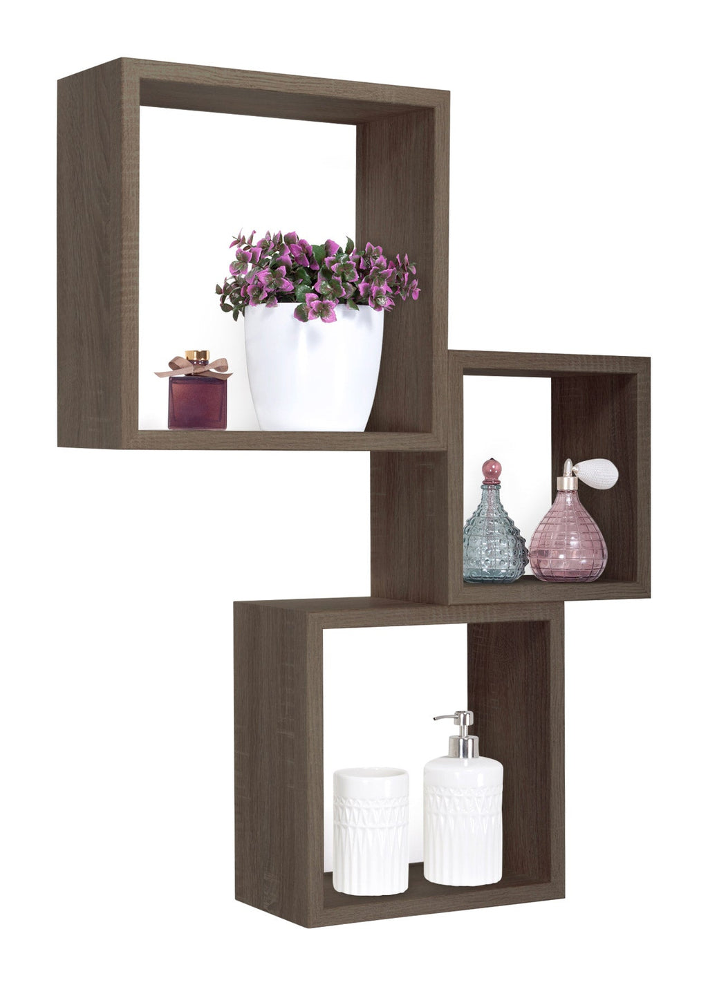 Set 3 Mensole da Parete Cubo in Fibra di Legno Incubo Noce