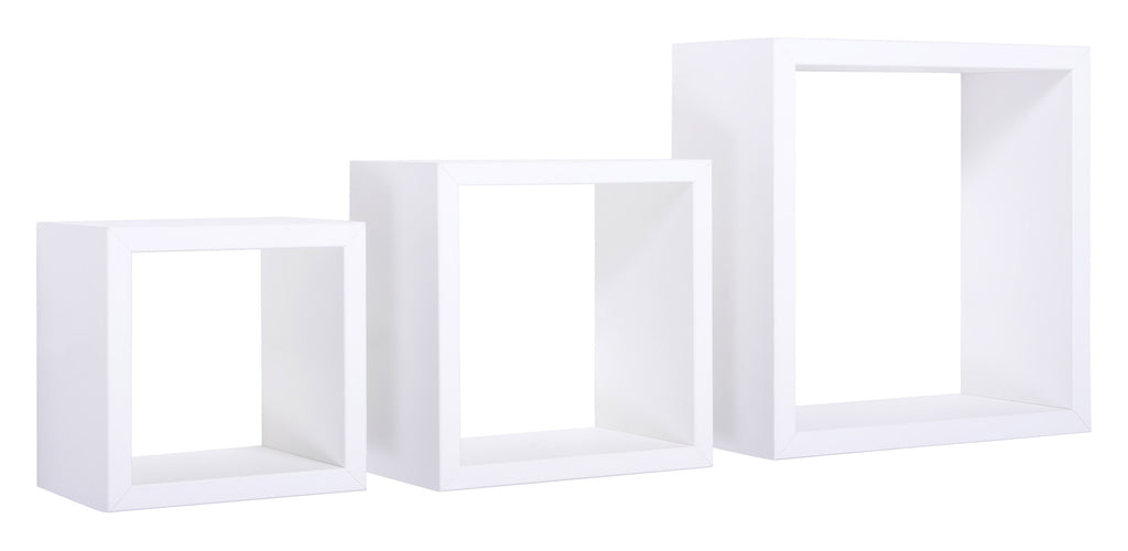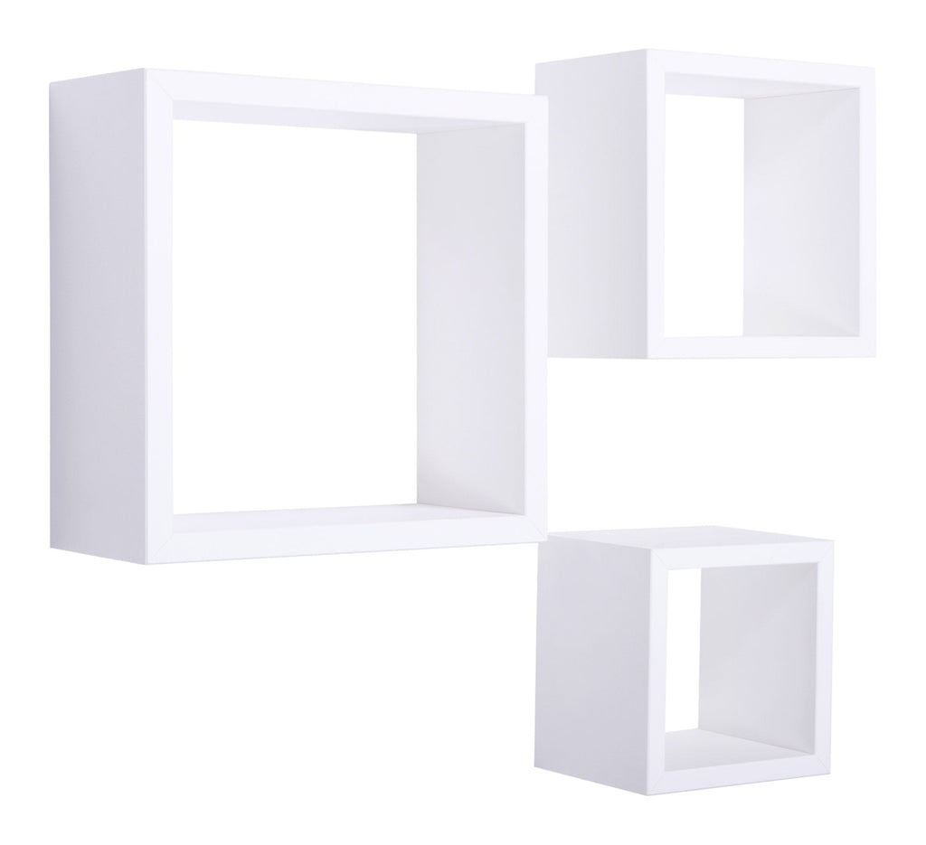 Set 3 Mensole da Parete Cubo in Fibra di Legno Rubic Bianco