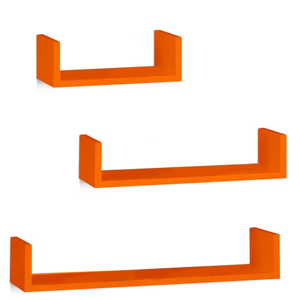 1 x Set 3 Mensole da Parete Moderne Design con Bordi Mensola Scaffale Legno Arancio
