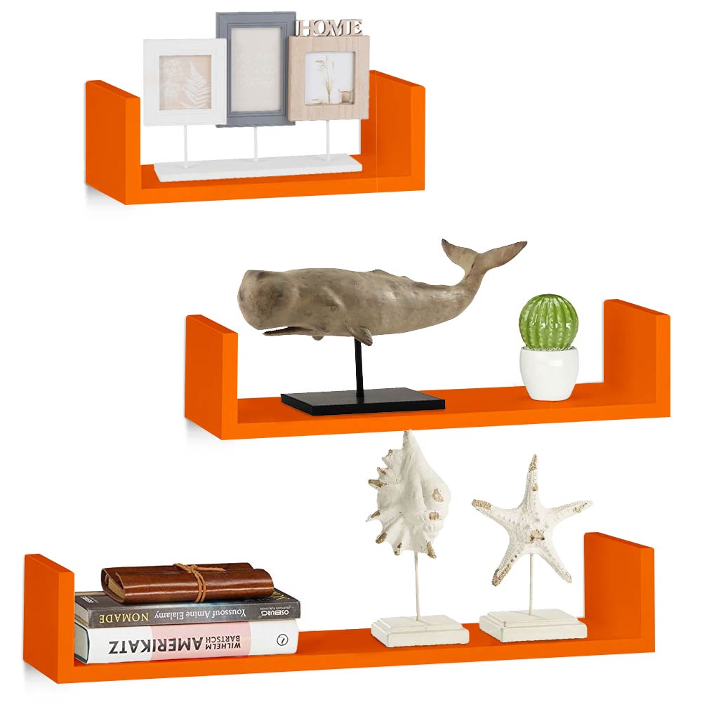 Set 3 Mensole da Parete Moderne Design con Bordi Mensola Scaffale Legno Arancio