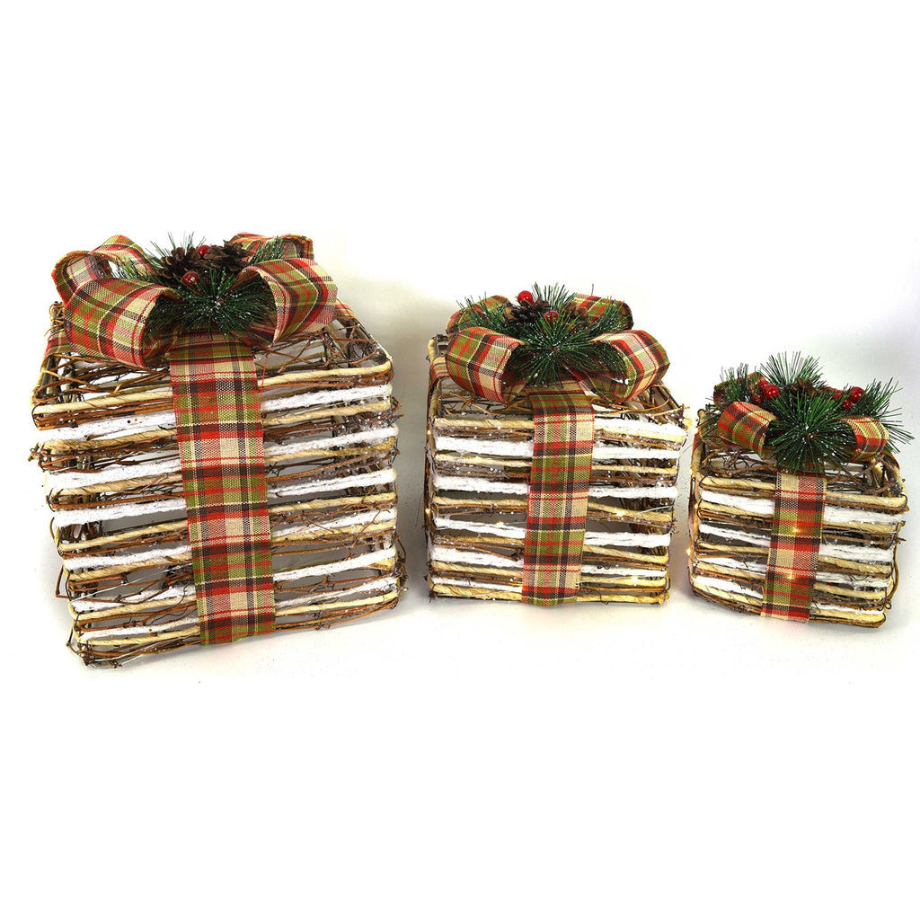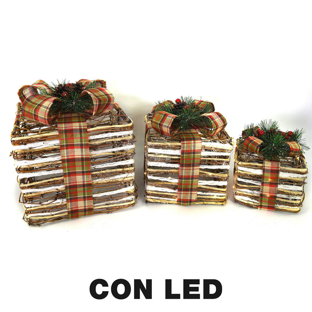 Set 3 Pacchi Regalo Decorativi con Led naturale