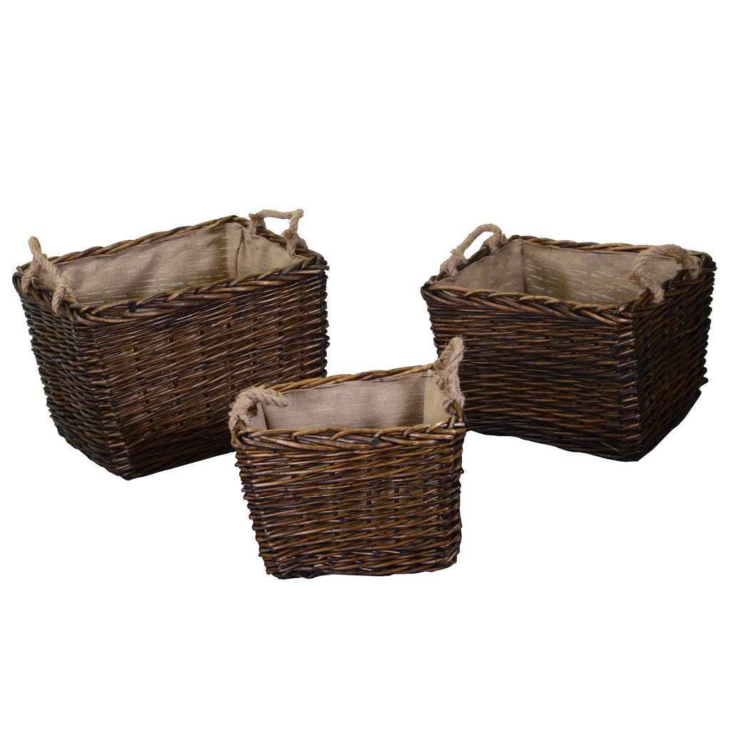 Set 3 portalegna in vimini con manici foderata juta marrone
