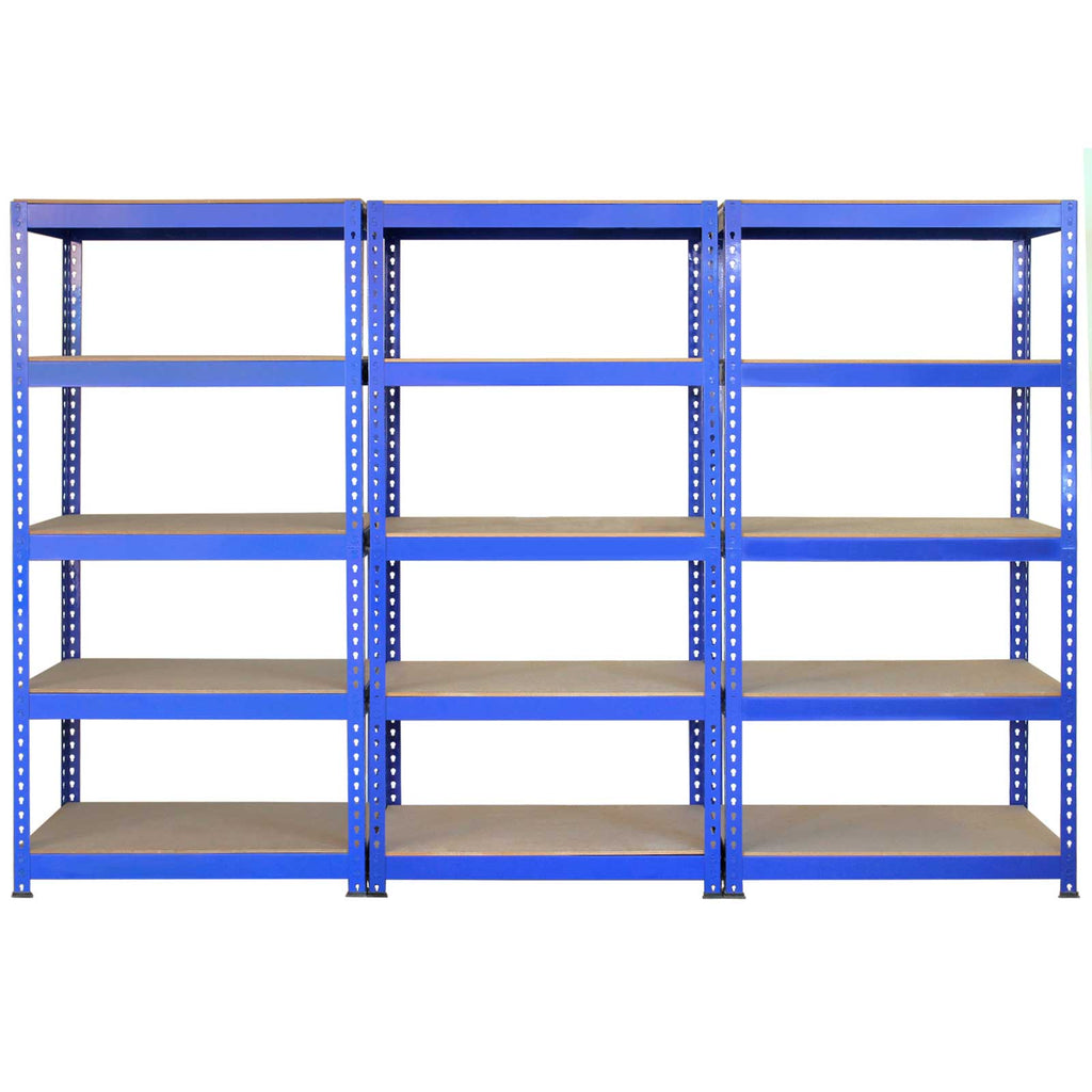 Set 3 Scaffali Senza Bulloni 90x50x180 cm in Acciaio Blu