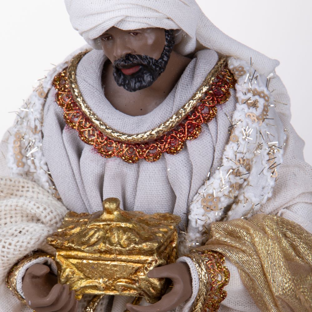 Set 3 Statuine Re Magi 36 cm in Tessuto e Resina Bianco e Oro