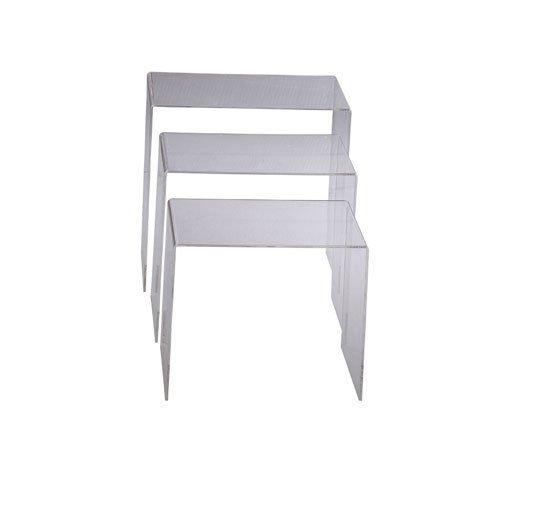 Set di tre tavolini in plexiglass acrilico, dal design semplice ed elegante, che è stato realizzato in acrilico trasparente e richiama sicuramente l'attenzione nel vostro salotto e nel vostro ufficio.