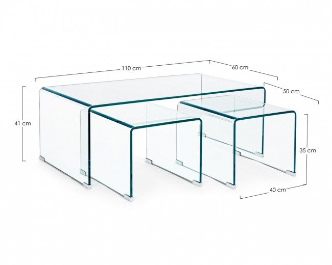 Set 3 Tavolini Iride Rettangolare con Vetro in Vetro