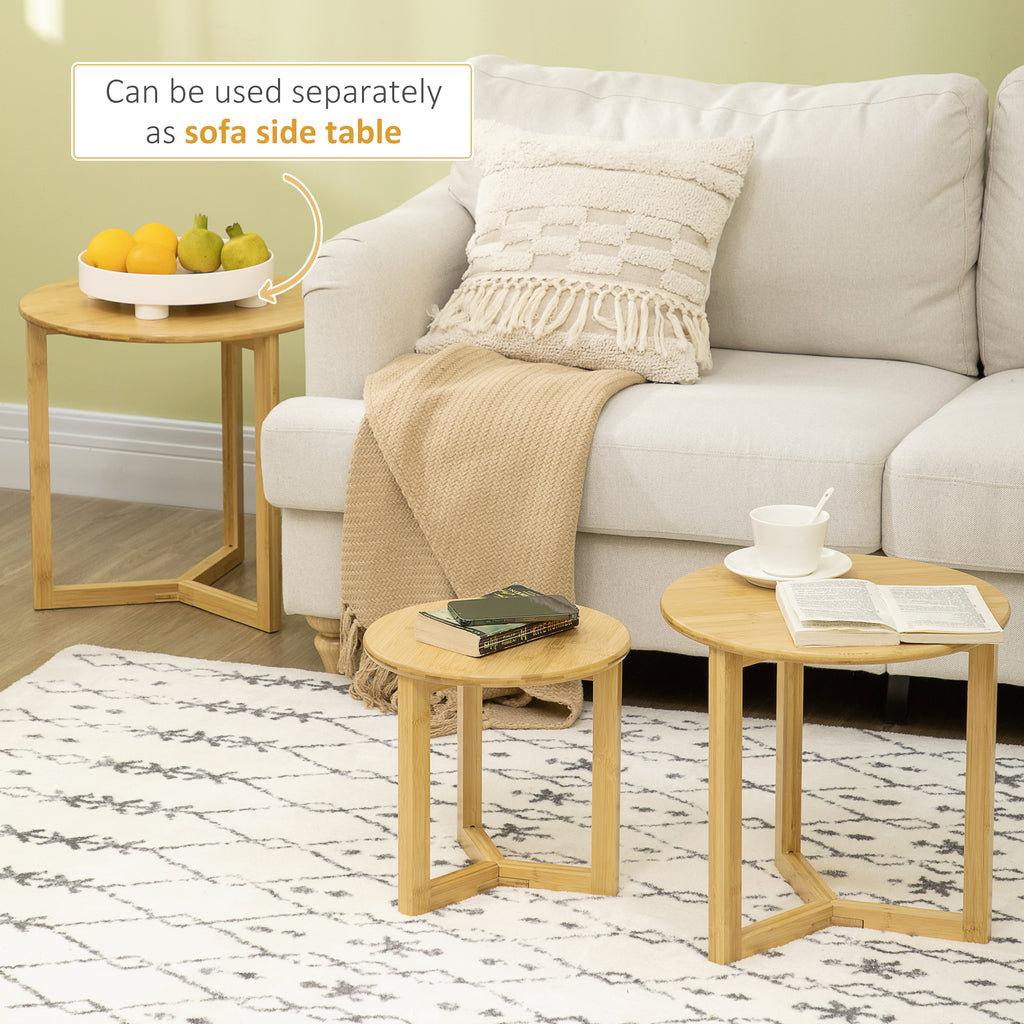 Set 3 tavolini Soggiorno Impilabili in Bambù Naturale