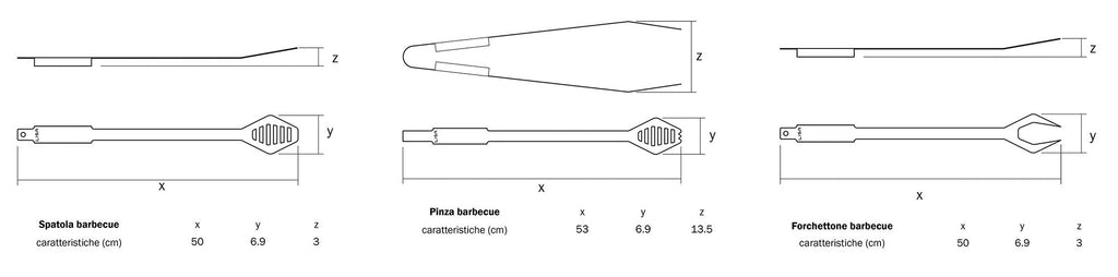 La gamma è composta da: un Forchettone, una Pinza e una Spatola. Tutti gli elementi sono lavabili in lavastoviglie