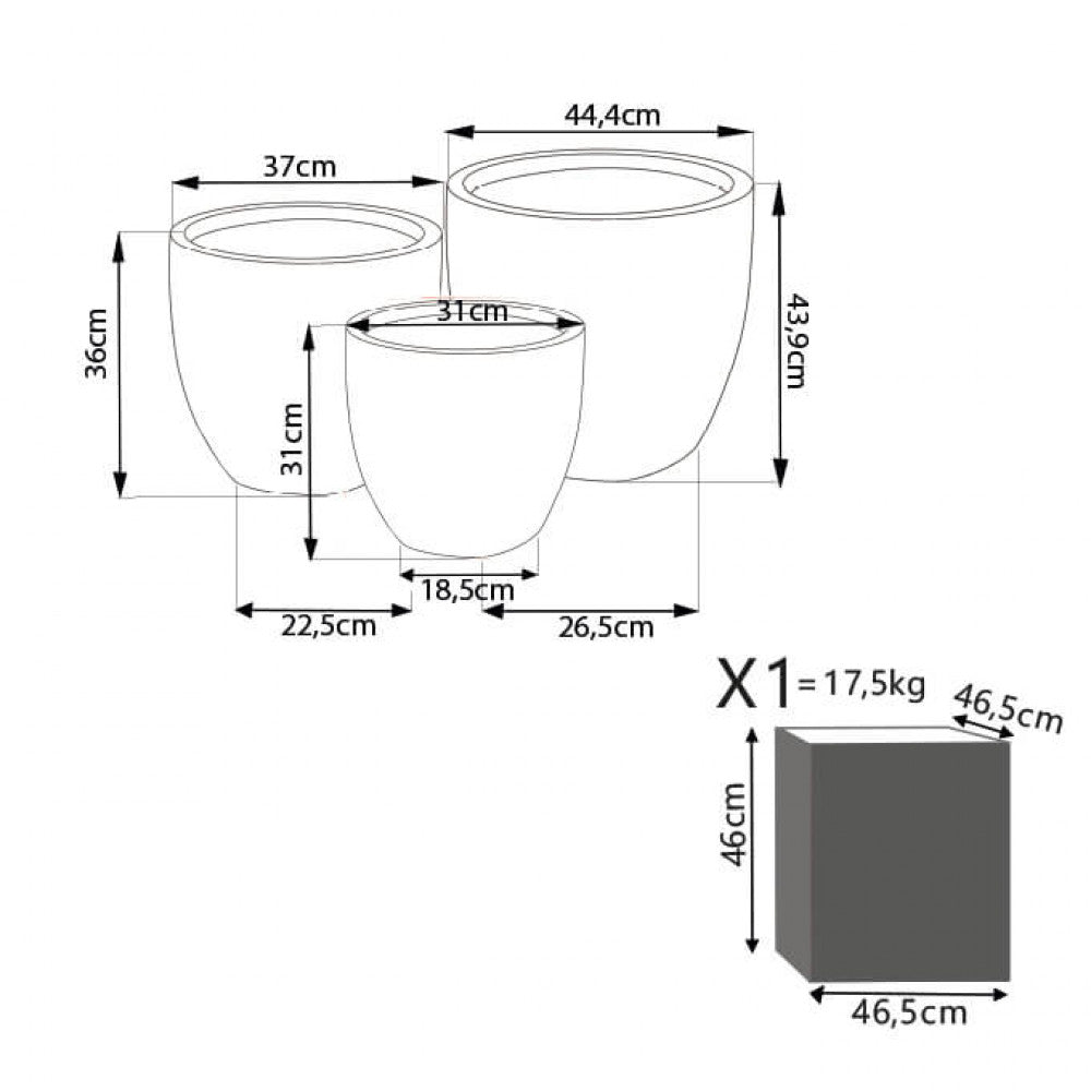 Set 3 Vasi Calla 2 in Fibra di argilla Grigio