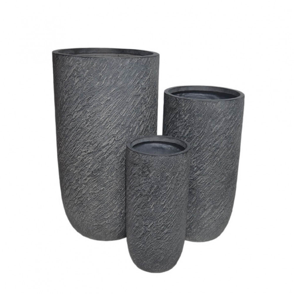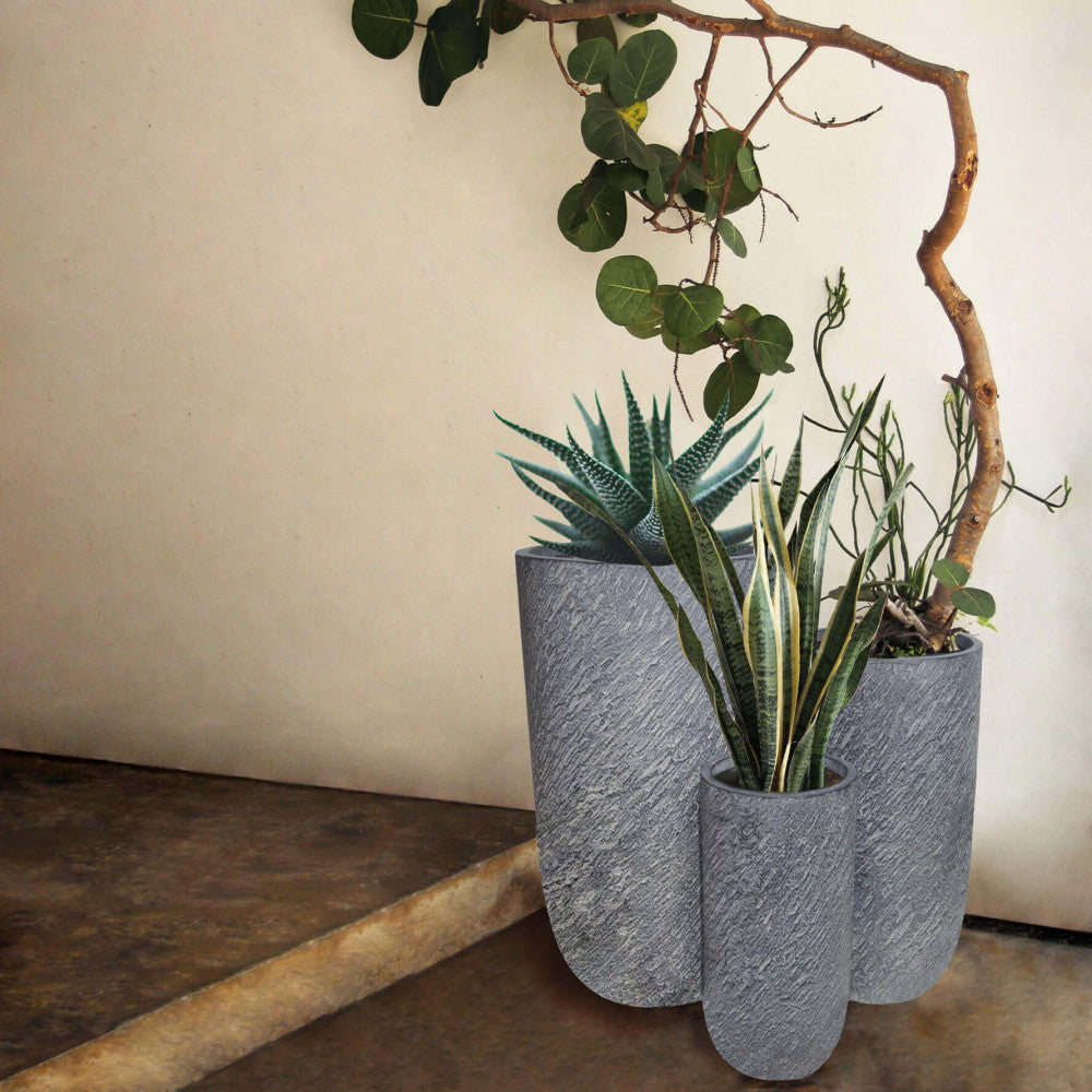Set 3 Vasi Tiglio in Fibra di argilla Grigio
