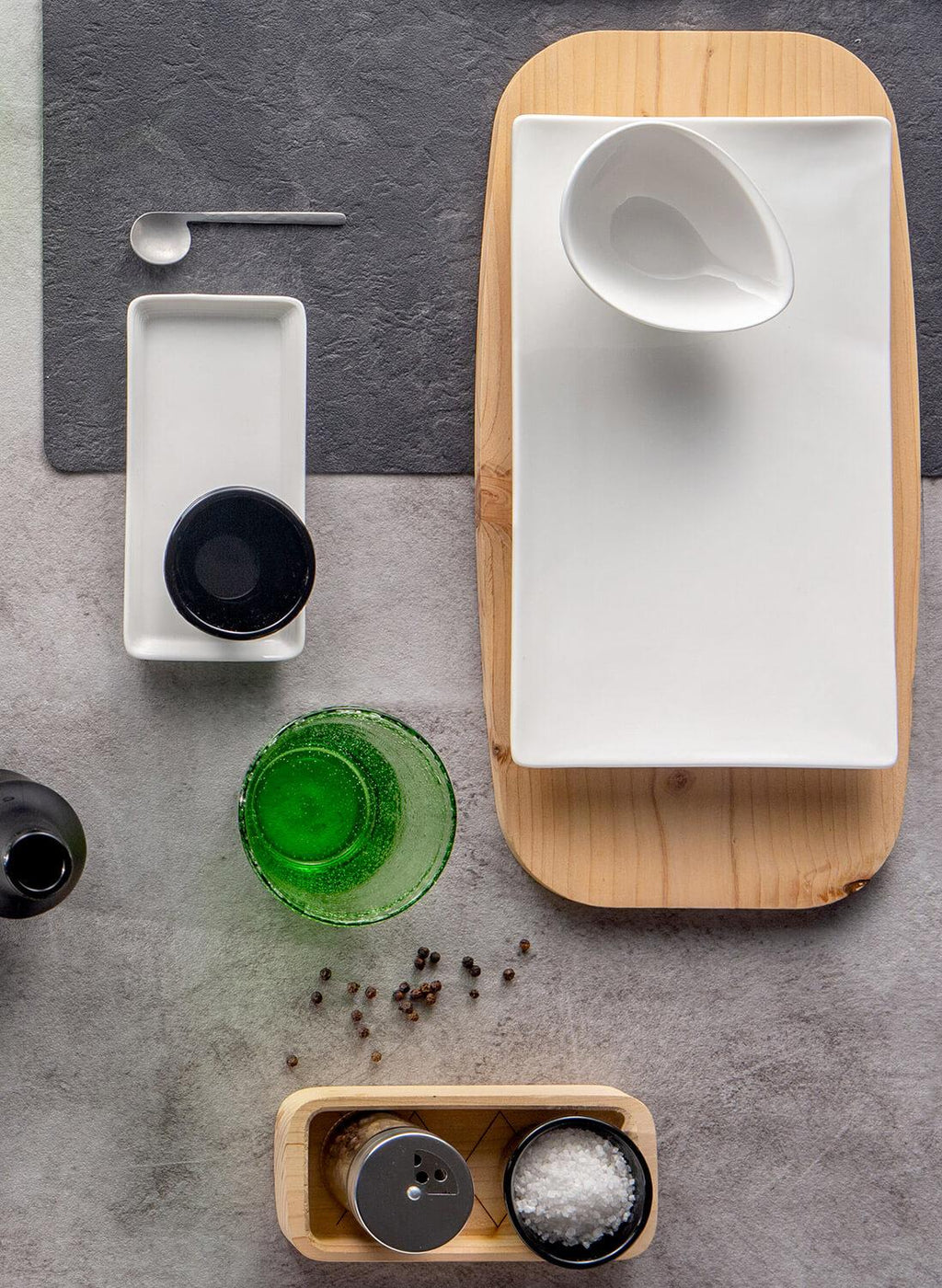 - Forme:l'immortale forma rettangolare si presta ad ogni tipo di impiattamento (sushi/secondi di pesce,carne/antipasti...) regalando alla tavola un aspetto moderno e ordinato adatto a mise en place minimal e ordinate..
