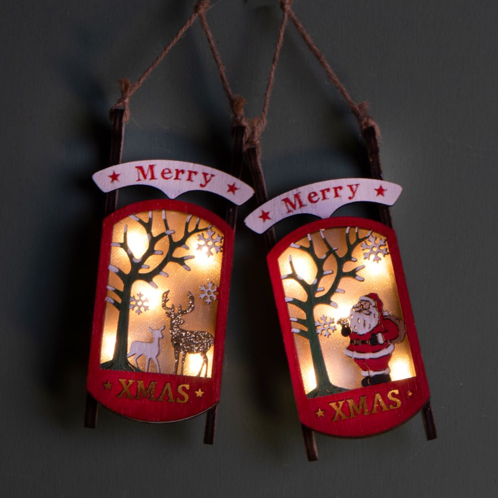 Set 4 Addobbi Natalizi con Led da Appendere 14 cm in Legno