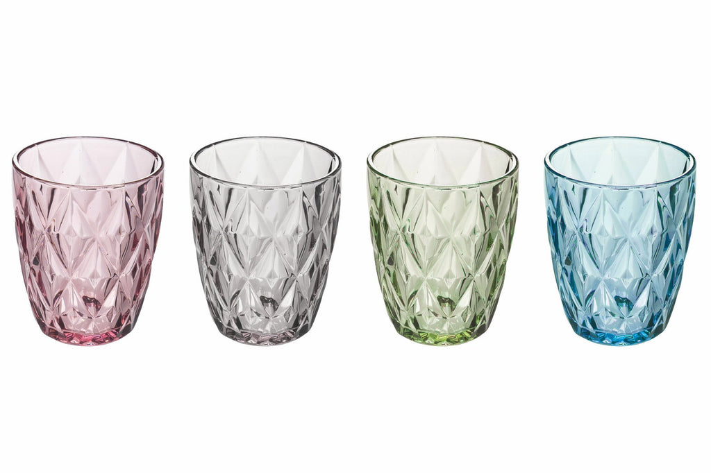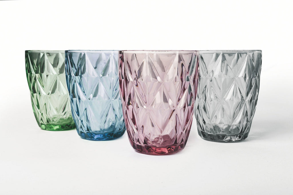 Sono davvero preziosi i bicchieri Renaissance con gli intagli i meravigliosi intagli che avvolgono la superficie. I colori pastello fioriscono sulla tavola con delicate note di colore.