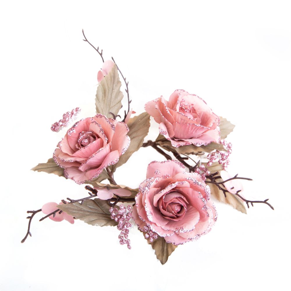 Set 4 Centrotavola con Rose Ø 15 cm in Plastica Rosa