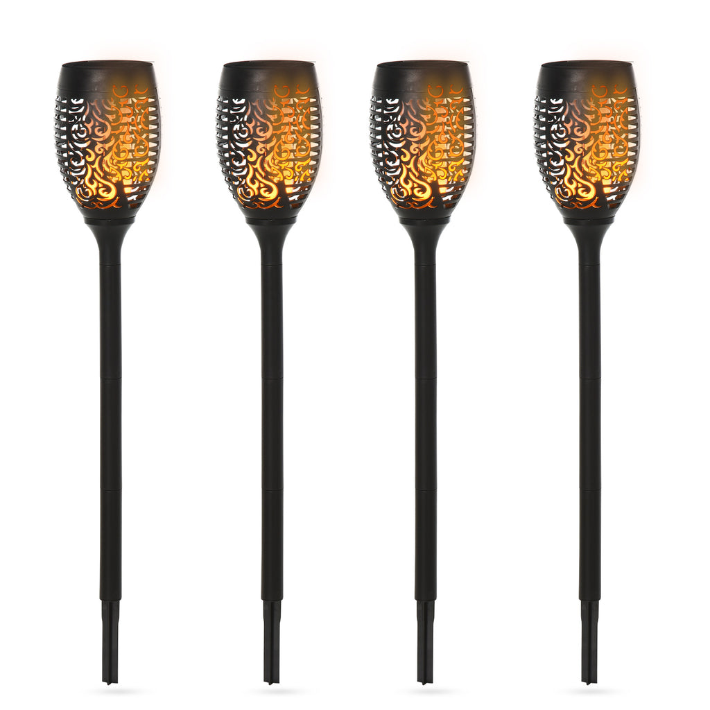 Set 4 Faretti Solari da Giardino Ø12x72 cm in Plastica Nero