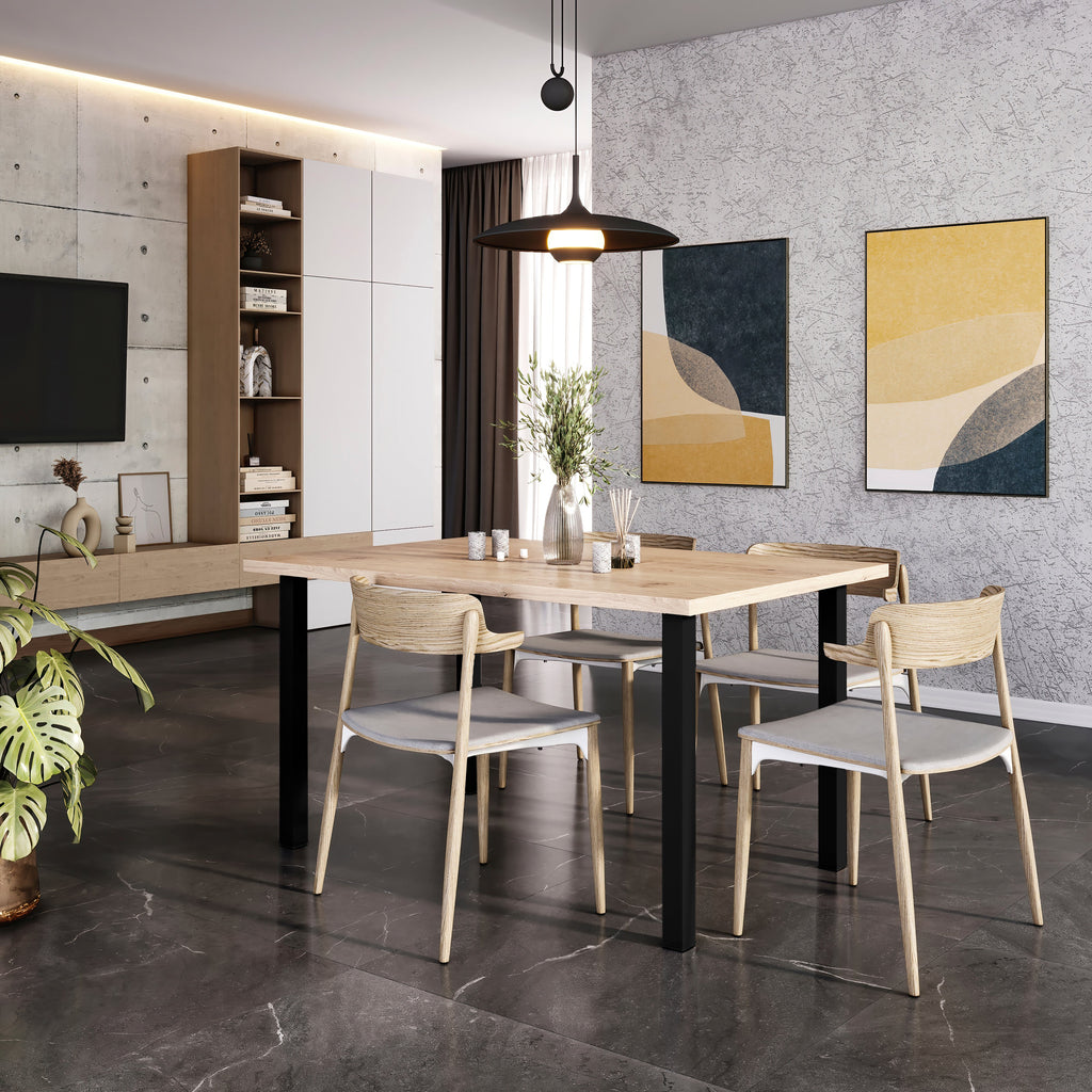 Includono tutto il necessario per il loro montaggio, basta solo aggiungere il tavolo che ti piace di più. Inoltre dispone di gommini in plastica che fungono da terminazione per le gambe ed evitano di rovinare il pavimento.
