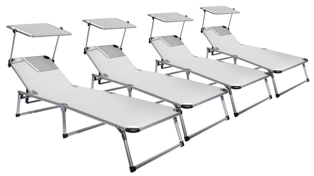 Set 4 Lettini Prendisole da Giardino Pieghevole 193x59x30 cm in Alluminio e Textilene Avorio