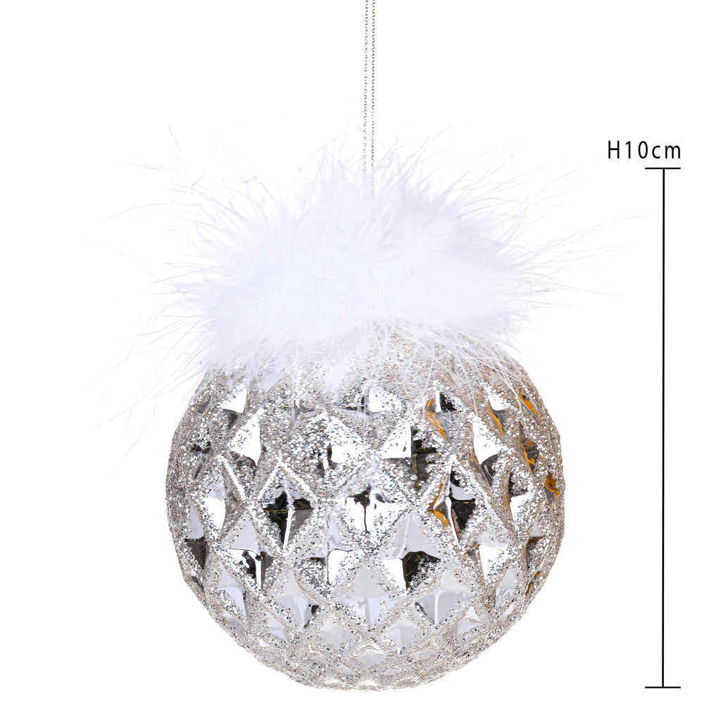 Set 4 Palla con Rombi e Piume Ø10 cm Silver
